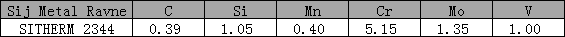 SITHERM 2344热作铬钼钒合金工具钢,含强化合金元素钼和钒。铬元素是合金钢在较高温度下具有抗软化作用,是具备抗高温回火性能的二次硬化钢,在高温环境中保持高硬度和高强度。在耐热疲劳、耐腐蚀和耐磨方面性能良好,是一种高韧性,高延展性,高淬透性的材料。在生产使用过程中可直接水冷。