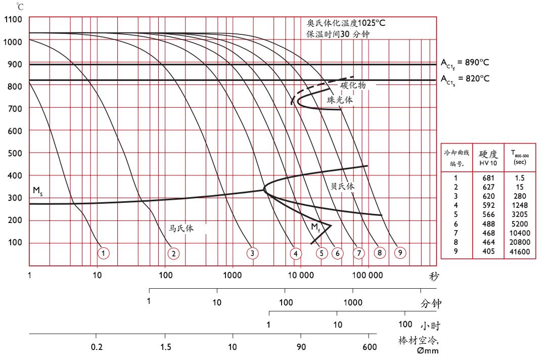 2)真空淬火(高速及足够正压的气体),若需要控制淬火变形和防止淬火开裂,建议在淬火至320–450℃时恒温片刻后继续淬火。