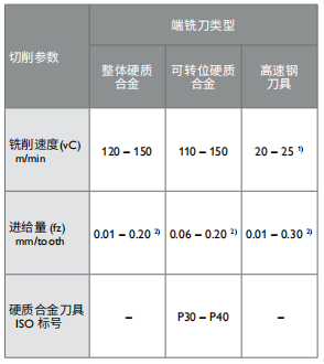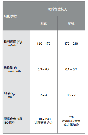 以下机加工参数仅作为加工指南,必须随实际加工条件做相应调整。